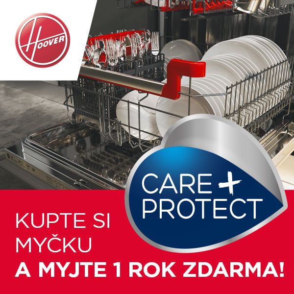 Zakupte jeden z vybraných volně stojících či vestavných modelů myček nádobí Hoover a získejte zásobu tablet do myčky značky Care + Protect na rok zdarma*.