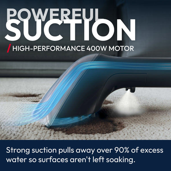 - Powerful Suction: 400W motor removes over 90% of excess water.