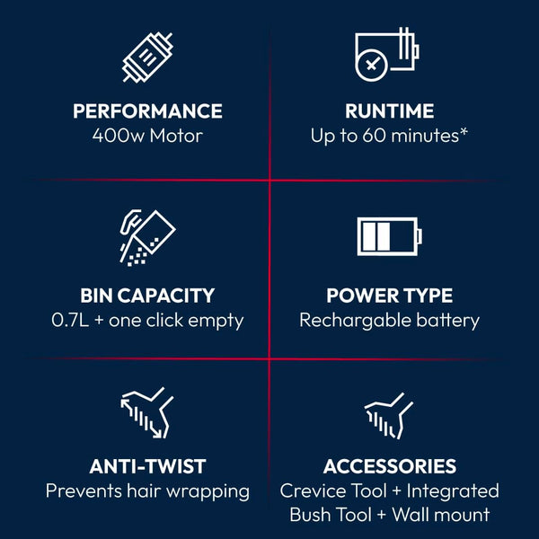 - Up To 60min Runtime – Clean your whole home on one charge