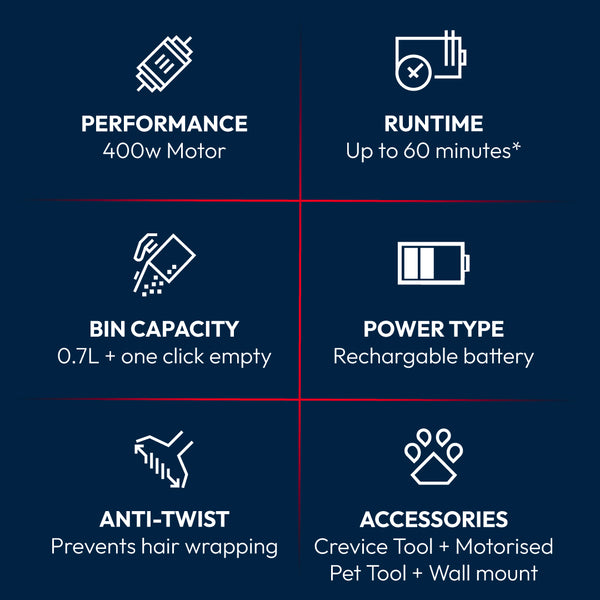 - Up To 60min Runtime – Clean your whole home on one charge