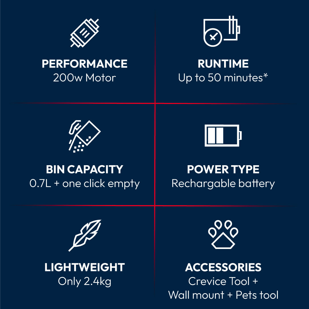 - Up To 50min Runtime – Clean your whole home on one charge