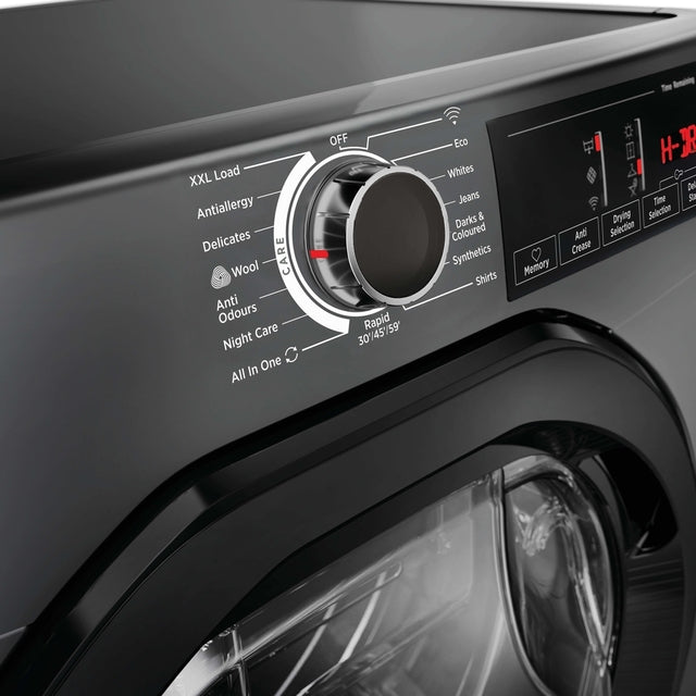 The H-Dry 350 (Heat Pump) Tumble Dryer - Graphite - 10KG offers a full range of drying cycles to care for clothes and preserve fabrics and colours with ease. With hOn app connectivity, you can control your dryer remotely via Wi-Fi and Bluetooth and access smart tips to improve performance.