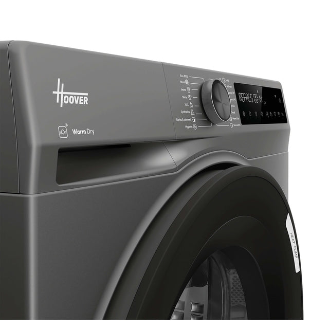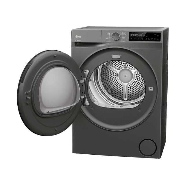 The Hoover Pro Dry Series 3 (Heat Pump) Tumble Dryer - Graphite - 10KG offers energy-smart drying with a 99.9% antibacterial Hygiene Cycle. Featuring AI Smart Move for tangle-free results and gentle care for delicates, it is easily managed via the hOn app.