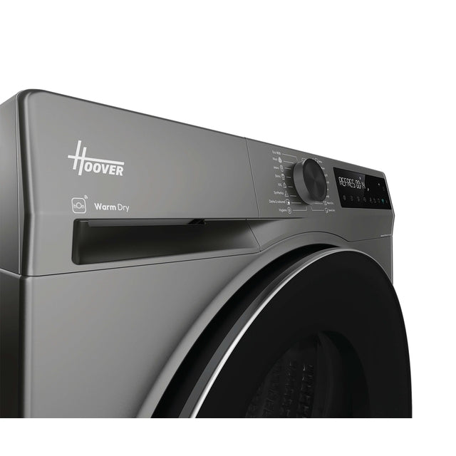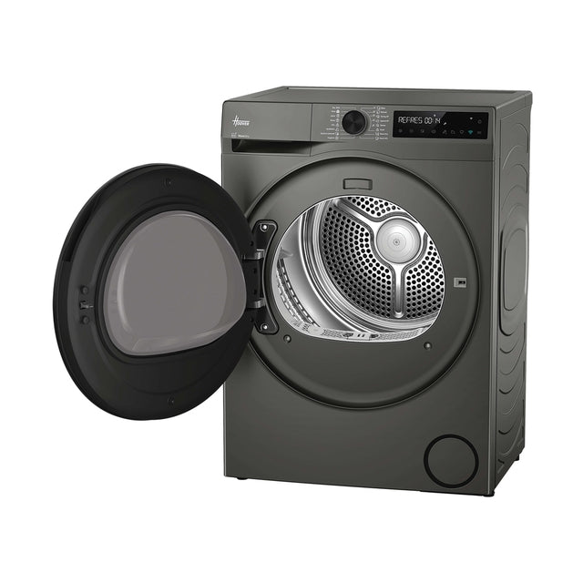 The Hoover Pro Dry Series 5 (Heat Pump) Tumble Dryer - Graphite - 10KG delivers energy-efficient drying with tailored cycles and a 99.9% antibacterial Hygiene Cycle. Featuring AI Smart Move for tangle-free results and gentle care for delicates, it is easily managed via the hOn app.