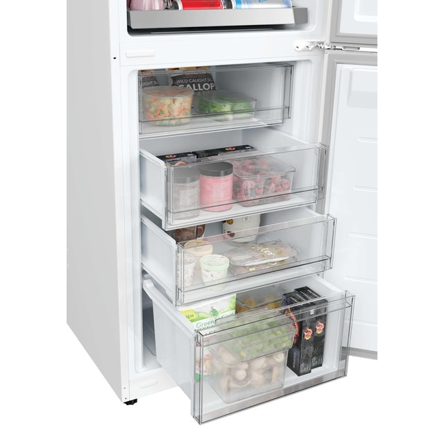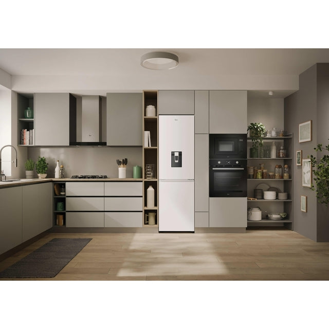 Enjoy effortless freshness with this H-Combi 300 Fridge Freezer & Water Dispenser - White - 303L. Total No Frost keeps food perfectly preserved, while the 2L non-plumbed water dispenser delivers chilled water on demand. With 306L capacity, flexible storage zones, and advanced airflow and odour control, your food stays fresh and organised with ease.