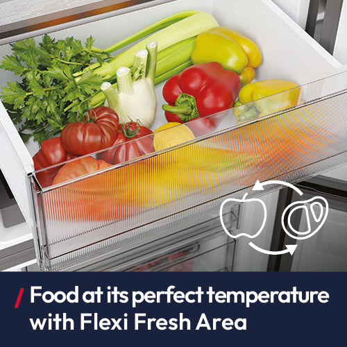 - Flexi Fresh Area: Adjustable temperature drawer for meats, fish, or vegetables.