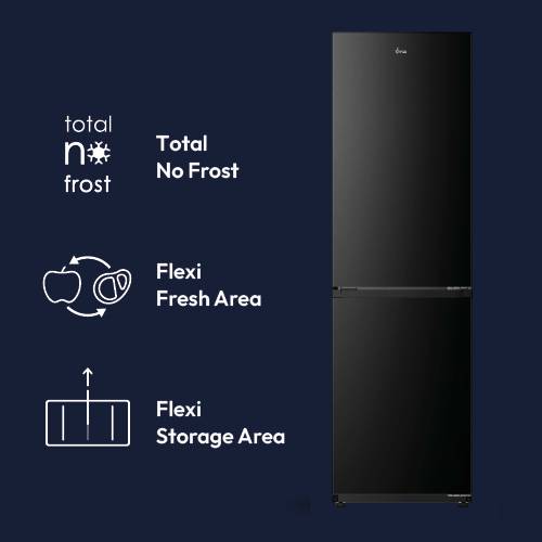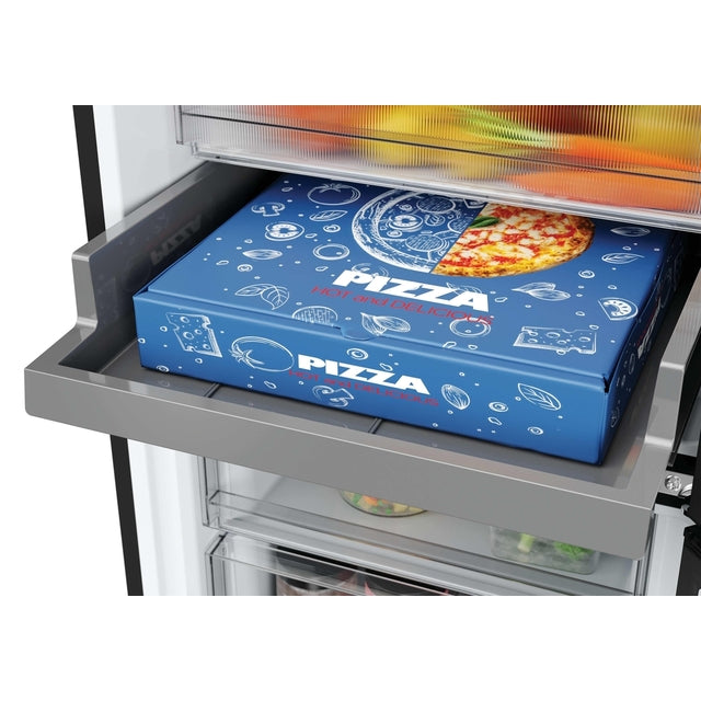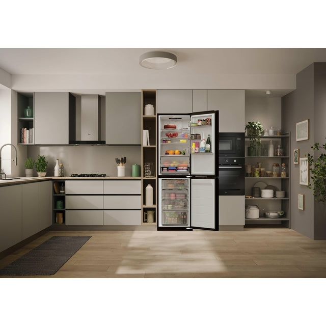 Enjoy effortless freshness with this spacious H-Combi 300 Fridge Freezer - Black - 306L. Total No Frost keeps food perfectly preserved with no defrosting. A generous 306L capacity, equal to 17 shopping bags, flexible storage zones, and large freezer drawers offer maximum convenience, while advanced airflow and odour control keep food fresher for longer.