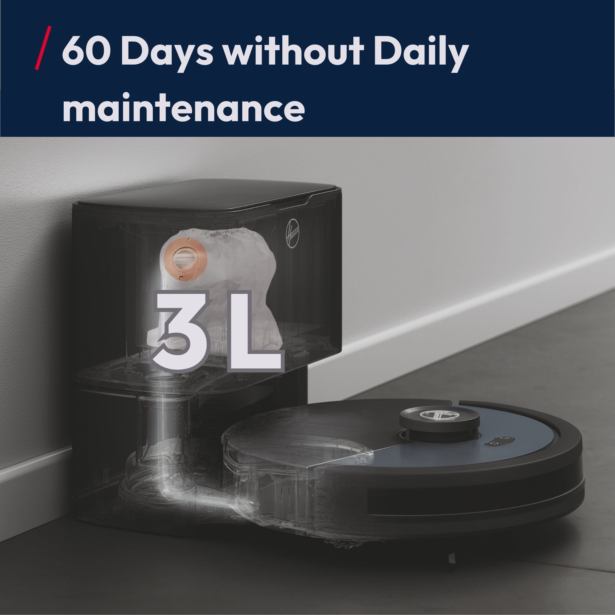 - 60 Days No Bin Emptying: Automatically empties into the dust station after each clean.