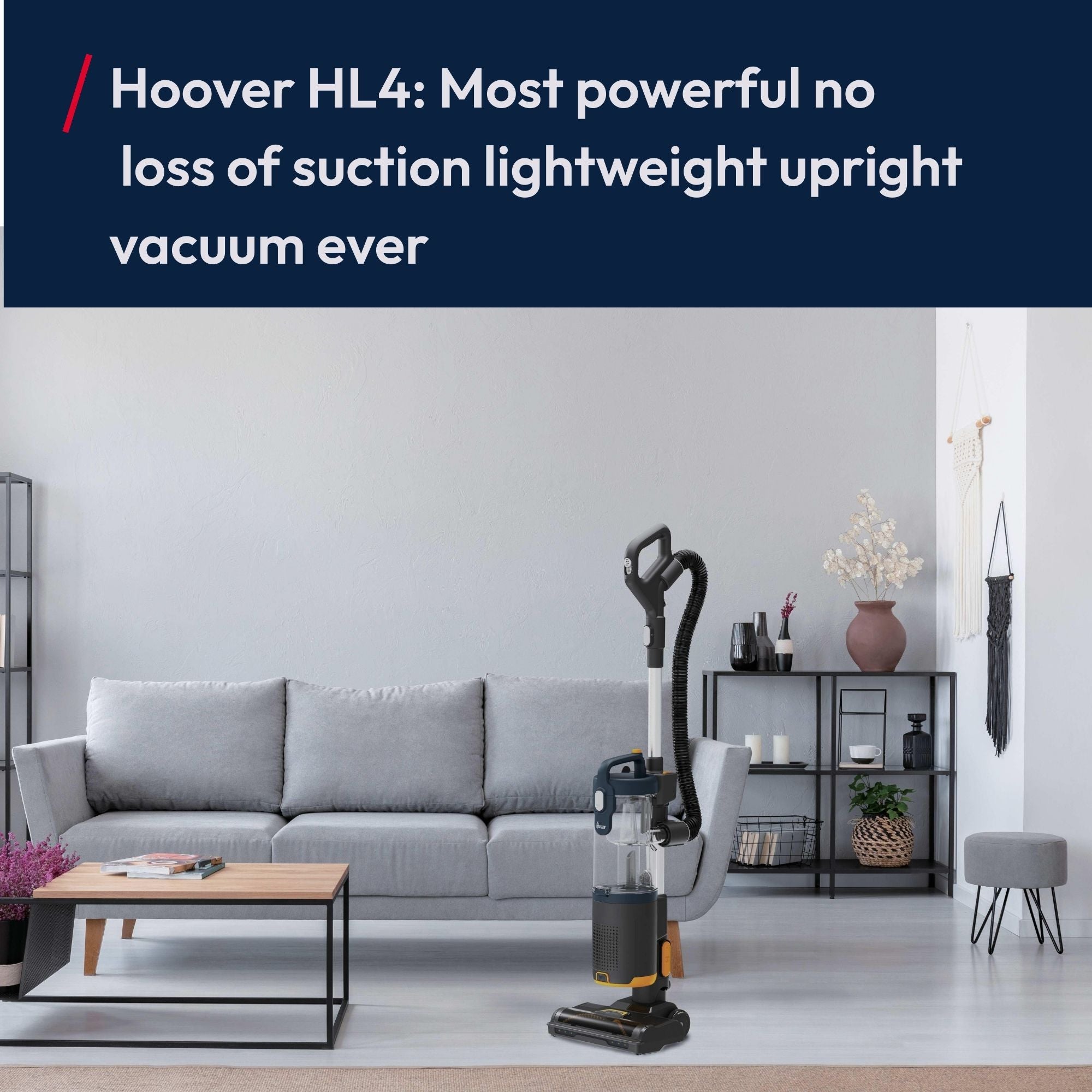 Our most powerful lightweight upright ever with no loss of suction* and ANTI-TWIST technology. The Upright Vacuum HL4 is light, manoeuvrable, and designed to deliver high performance while preventing hair tangling.