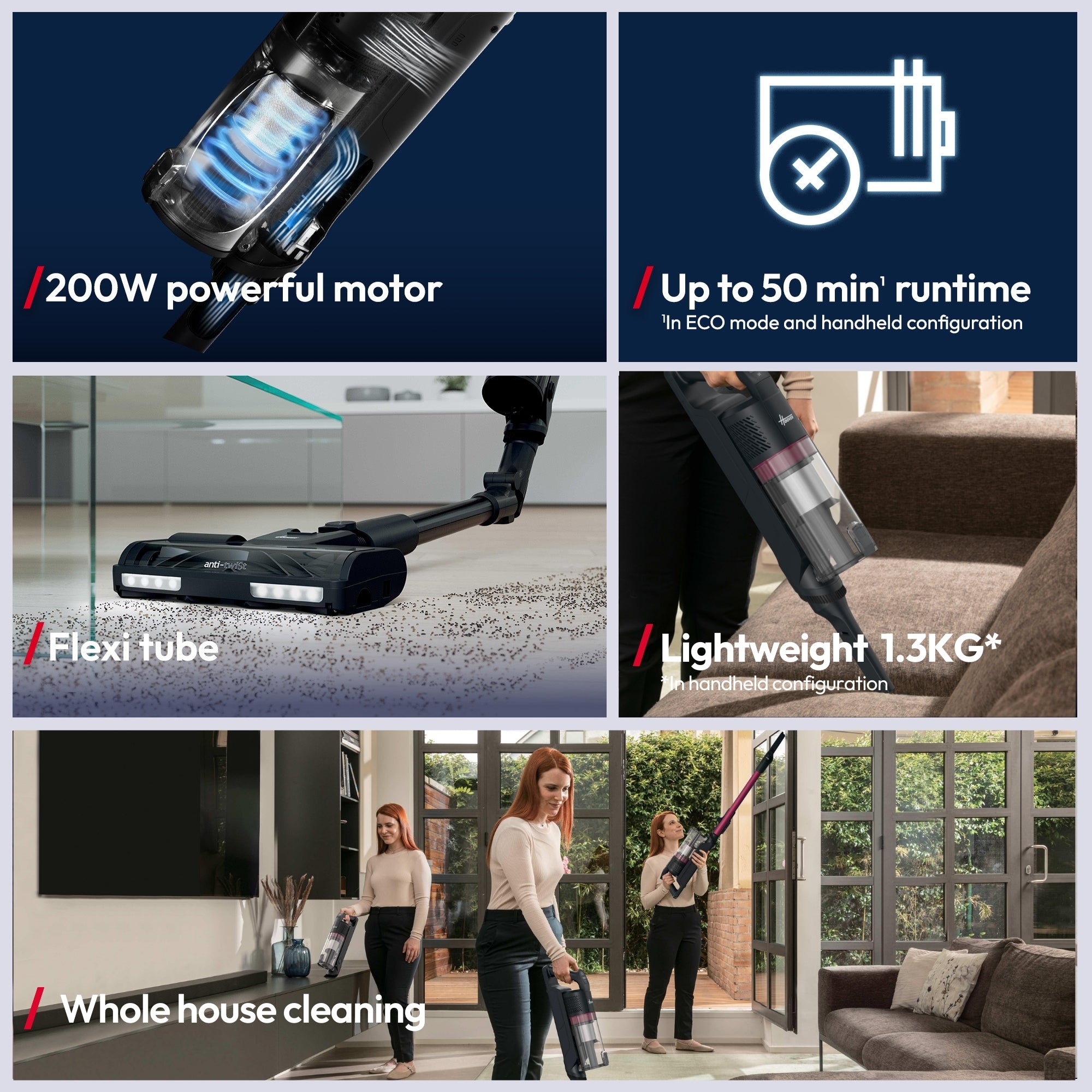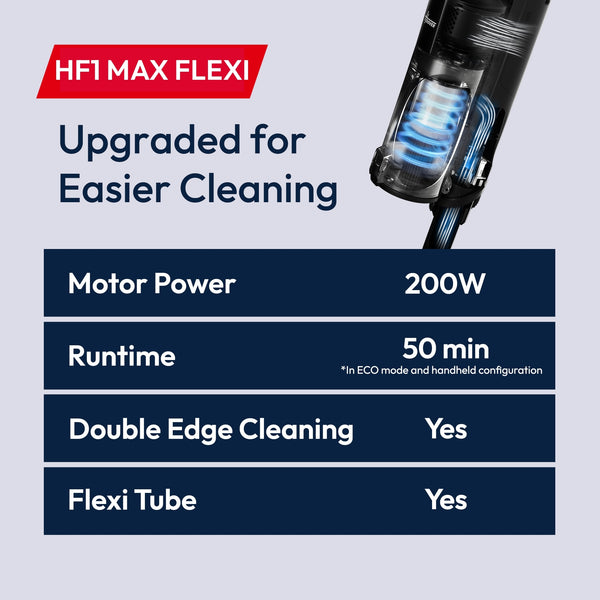 An upgrade to HF1 Plus, the HF1 MAX Flexi offers up to 33% more power* and longer runtime, plus a flexi tube for under-furniture cleaning easier than ever.