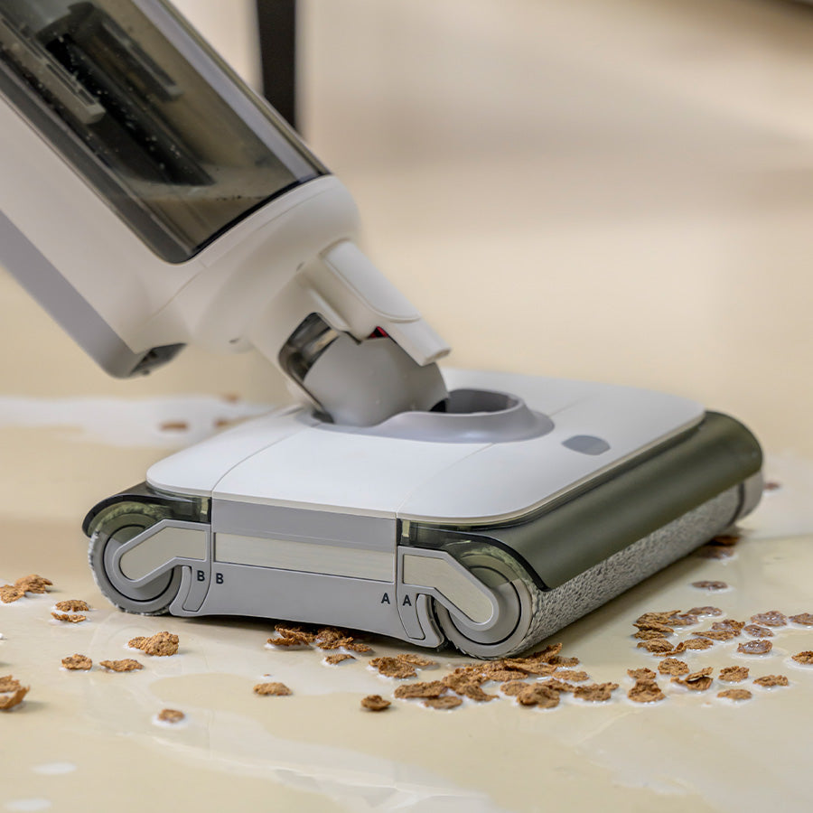 Le nouvel aspirateur lavant Hoover est doté d’un système à double rouleaux : il suffit de les laisser glisser sur la zone à nettoyer, pour un sol toujours propre.