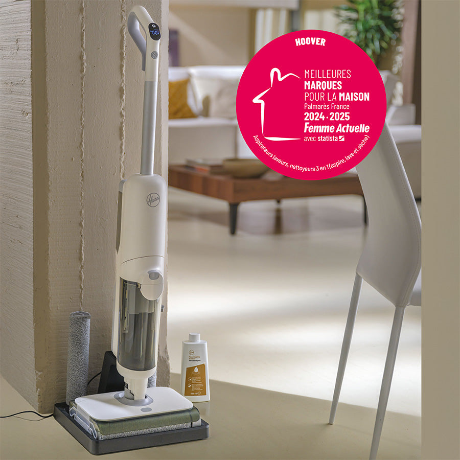 Notre aspirateur-laveur HW5 Hoover 2 en 1 reçoit le prix "Femme Actuelle" dans sa catégorie, une belle reconnaissance qui souligne la performance et l’innovation de notre aspirateur.